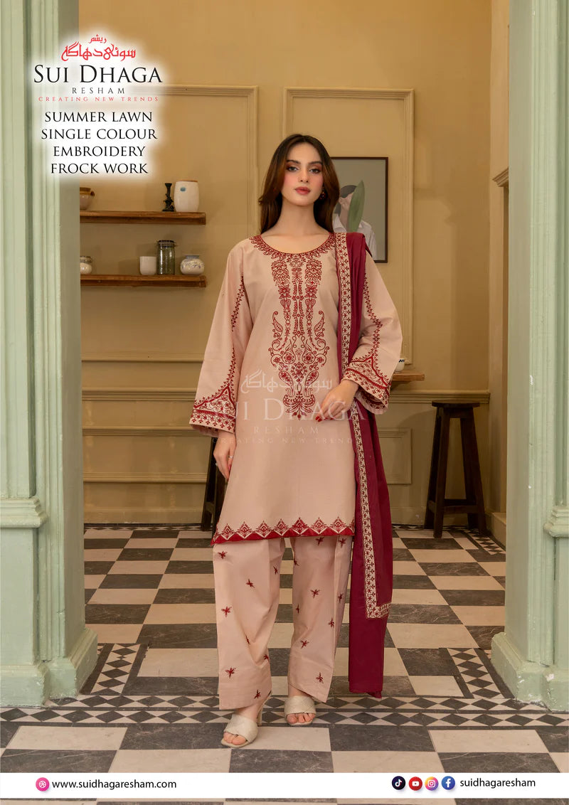 Keywords: Eid stitched dress Pakistan, luxury lawn suit for women, 3-piece stitched suit, ready-to-wear Eid outfit, Pakistani embroidered lawn dress, premium summer lawn frock style suit.